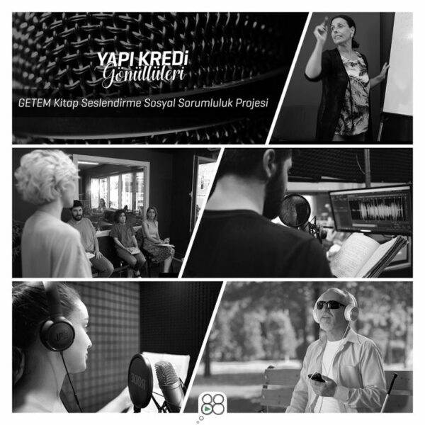 Ses uzmanlarımız; diksiyon, dublaj, seslendirme ve kayıt tekniklerini öğrenen gönüllülerin kitap seslendirme süreçlerine destek oldular. Ses düzenlemeleri yapılan kayıtlarımızı GETEM’e bağışladık ve görme engellilerin bu eserlere ulaşabilmesini sağladık.